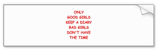 I learned something else: If you Google “Bumpers diary,” you get a handful of news articles but you also get a link to the website Zazzle featuring diary-related bumper stickers. It is the most bizarre assemblage. Check these out: